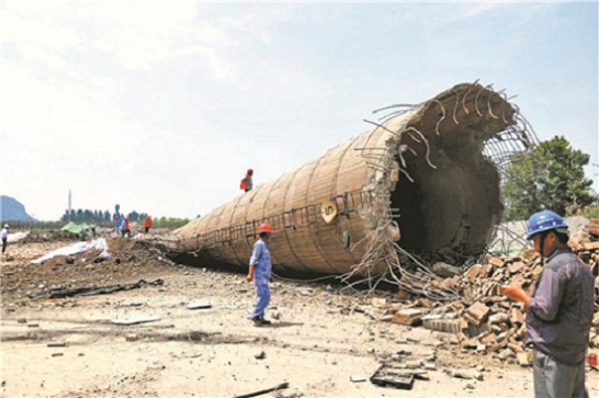 2、烟囱周边全部搭设安全网,拆下的小块不得超过25cm×25cm左右。